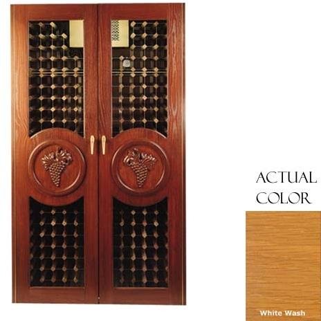 Vinotemp VINO-700CONCORD-WW 440 Bottle Concord Wine Cellar With Grape Motif - Glass Doors / Whitewash Cabinet. VINO-700CONCORD-WW. All Wine Refrigerators. The popular Concord 700 model features beautiful hand-carved grape motifs on its dual-paned glass doors and stores up to 440 bottles of wine. This gorgeous piece of oak furniture fits beautifully inside the living and dining spaces of your home and comes standard with an unfinished interior to protect your wine collection from chemicals and your choice of over 15 different six-step factory exterior finishes. The standard Wine-Mate 1500CD cooling system will keep your bottles at your selected temperature between 52-60. (Capacity varies with size and shape of bottle. ) Dimensions: (51 inchW x 29 inchD x 88 inchH).
